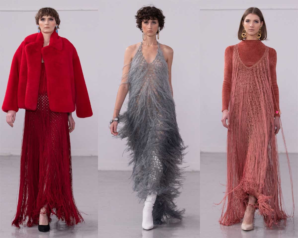 For Mark Fast, autumn/winter 2020 was a homage to the late swinging Sixties with mini dresses, tailoring, shag pile coats, and gorgeous glamorous floor-sweeping open back gowns crafted from crochet with his signature fringing.