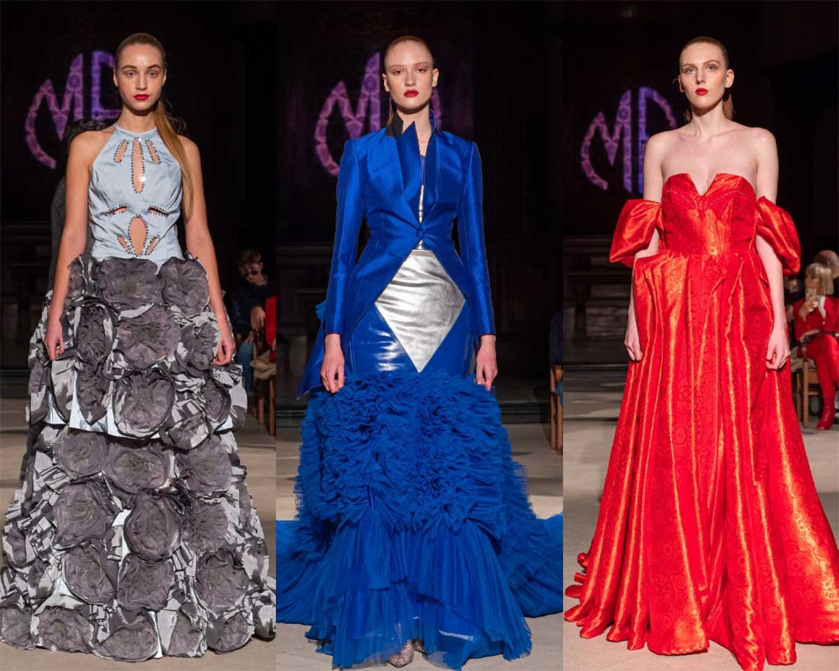 Much like a ballet, Breton showcased his collection in three striking acts, from soft blush tones in faux furs and tulle to sparkling creations featuring Swarovski crystals and reflective fabrics that resemble the embers of the phoenix, and then onto bursts of fierce reds in vivid silks that added an intense yet opulent sensation to the collection.