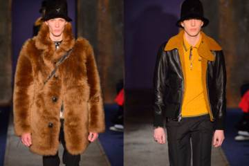 The artistry was in the details: cut from wool and nylon, every look came complete with patches and panels of leather, suede and shearling. Furry oversized bucket hats came pared with oversized parkas in nylon, treated cotton and shearing. Teddy bear fur coats were as show-stopping as the boxy leather jackets were wearable. Trousers were cut straight and cropped from stiff mohair with prominent stitching. Weather-appropriate footwear came in the form of sneaker-boot hybrids complete with cherry red laces.