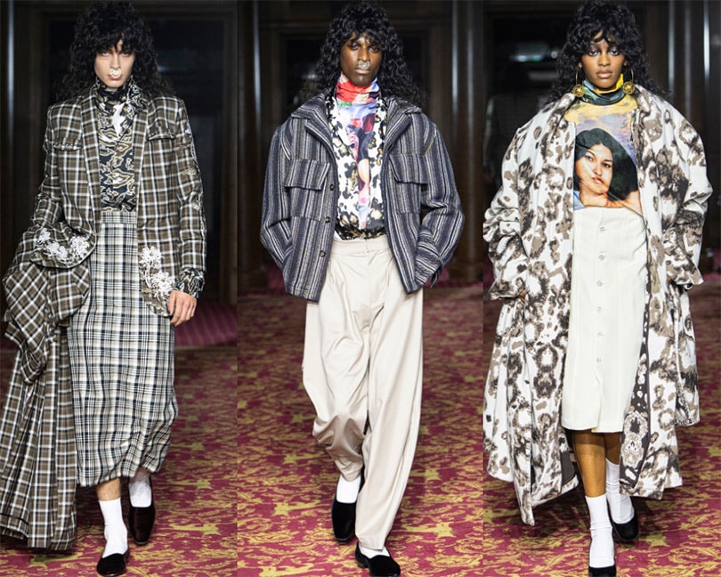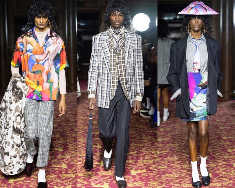 British designer Edward Crutchley, winner of the 2019 International Woolmark Prize and shortlisted for BFC/GQ Designer Menswear Fund, continued to impress editors and buyers with his co-ed autumn/winter 2020 collection that was mixed with cultural references from around the globe.