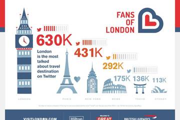 This is 200,000 times more than the next popular cities were mentioned, which include Paris, New York, Rome and Tokyo, according to data from London and Partners, the Mayor of London's promotional company and Spredfast.