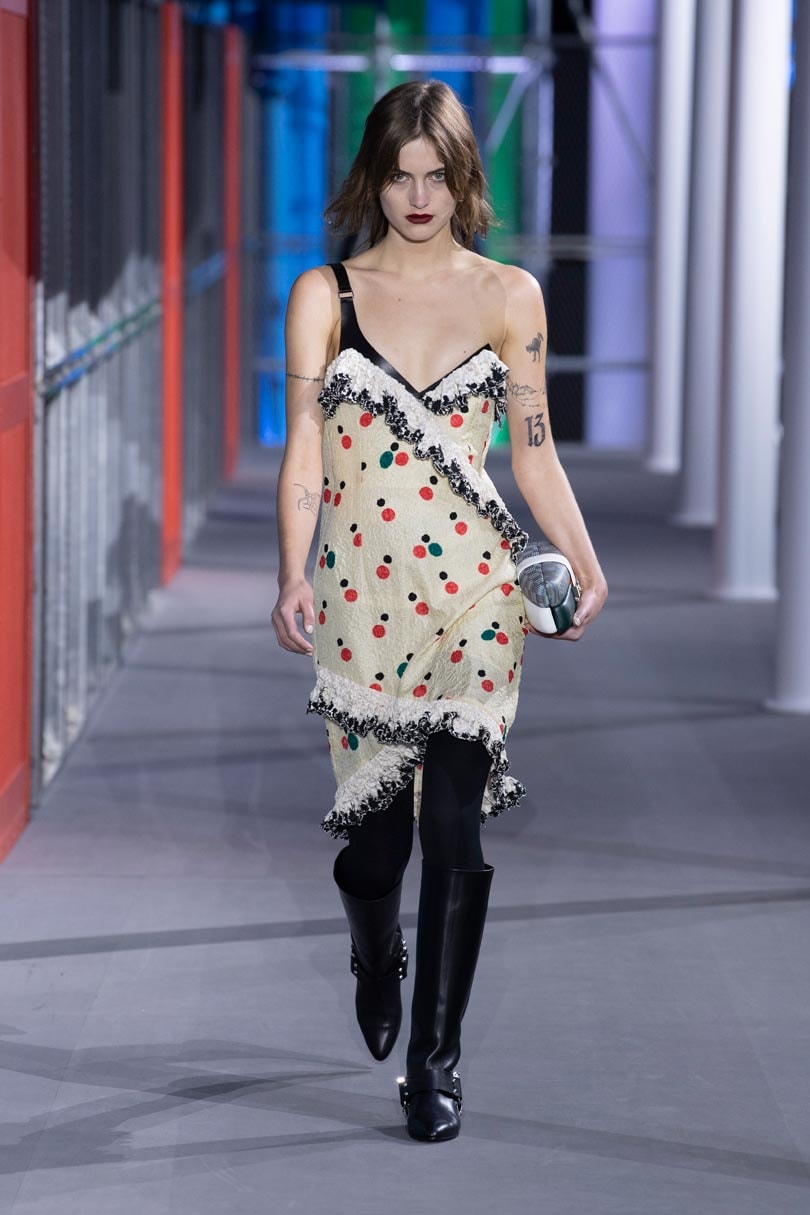 In fact, the pick 'n' mix pattern palate was an hommage to what Ghesquiere called the "sartorial melting pot" of the still rather rough-edged shopping district near the Pompidou Centre, where the timelessly tasteful wardrobe codes of upper class Parisians rub up uneasily against the more eclectic street style of the youthful multicultural suburbs.