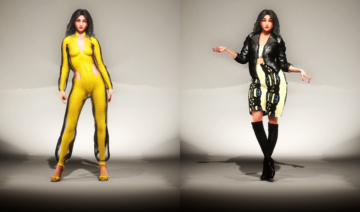 The virtual show featured 75 looks, with 3D avatars presenting the clothes on catwalks in front of backdrops including an AI version of Piazza San Marco in Venice complete with pigeons as well as nature-filled scenes with floating butterflies and futuristic light platforms.