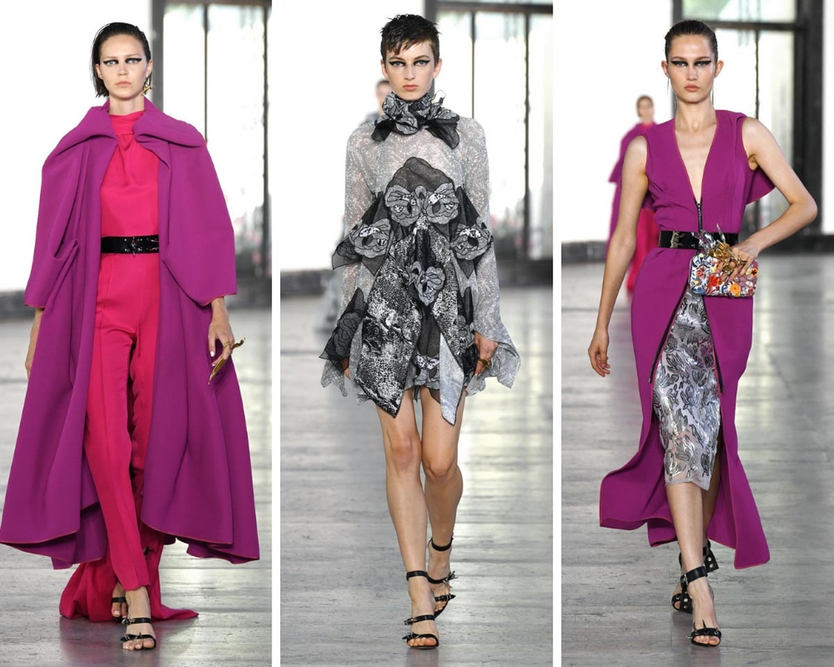 The renowned Australian designer stated that the collection took three months to develop and was inspired by the notion of an “about-to-bloom flower to heightened levels,” which is showcased throughout the collection that includes fabric curls about the face that looks like they grow upwards to the neck like unfurling petals.