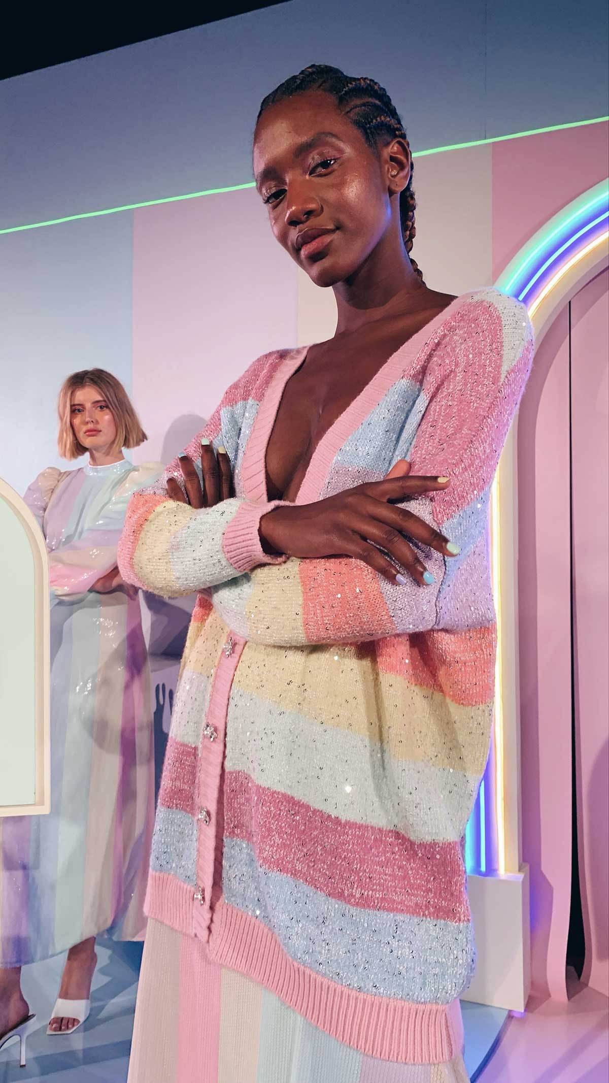 Walking into Rubin’s presentation, editors and buyers were greeted by an ice-cream parlour with a party atmosphere, this was a fashion week showcase for the Instagram-age, candy colours, fun props and beautiful feminine silhouettes. It was a homage to her beloved best-selling dresses and brightly coloured prints, while also establishing herself as a contemporary designer of the Instagram-age.