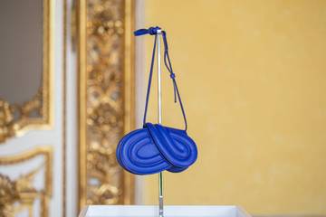 Ten students of the Master in Bag Design at Polimoda are presenting the designs of their bags in an exhibition. The students created luxury Italian leather handbags during the past 9 months for their final projects. The colorful prototypes are being showcased in Villa Favard's gilded hallway.
