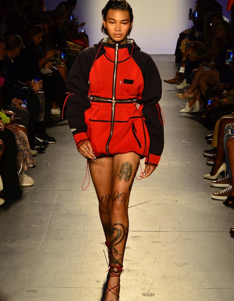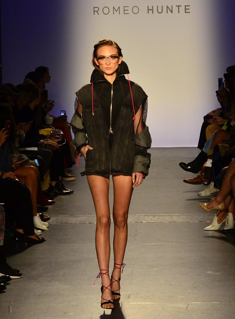 New York-based designer Romeo Hunte launched his latest womenswear collection at New York’s Chelsea Piers this past weekend. Hunte explained to WWD that the collection is part SS19 and part see-now-buy-now. Like many collections shown at New York Fashion Week this season, Hunte’s takes a cue from streetwear, incorporating sweatshirt-inspired pieces complete with drawstrings, custom neoprene, oversized collars, buffalo check and black denim.