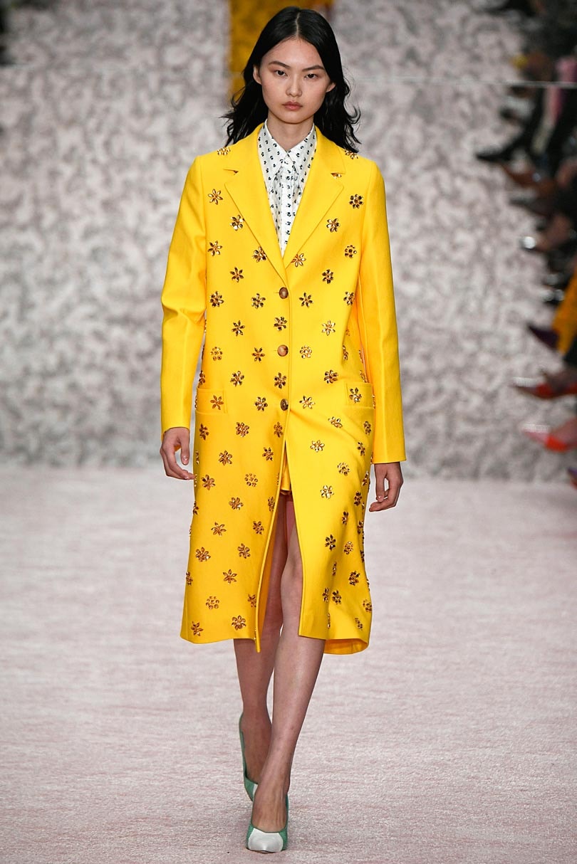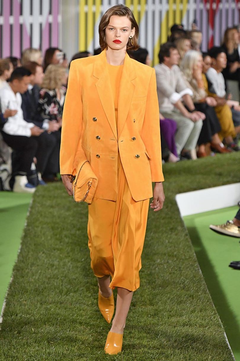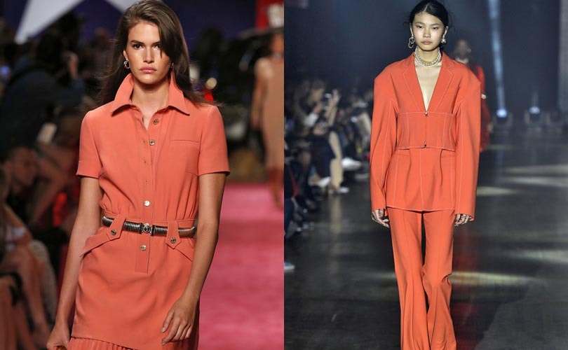 According to Pantone, Living Coral is a “friendly and inspiring shade with a golden undertone for a softer look”. The vivid color was spotted on Brandon Maxwell’s catwalk in both a casual chic T-shirt dress and an oversized suit combines with flared trousers.