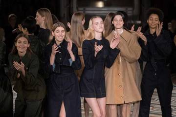 The creator, the daughter of ex-Beatle Paul McCartney, had previously admitted that it was difficult to find substitutes for leather. But you would never know it from the string of faux leather trouser suits, jackets and coats that make up the core of her collection.