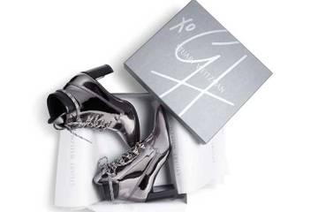 The hiker-inspired high heel combat Gigi Boot was co-designed by the model and aims to reflect her personal style, and features a stacked heel, metallic eyelets, duo-toned laces designed to wrap around the ankle, and a detailed collar.