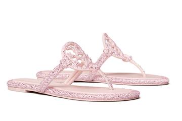 The limited-edition collection reinterprets Tory Burch's classical styles in the textures, colours, and flavours of BonBon, including its ‘Miller’ sandal and mini ‘Fleming’ hobo bag, which have been dipped in a “sugar” beaded coating, like BonBon’s sour gummies.