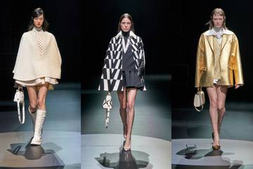 “The blade acts without any hesitation: with inexorable urgency, it brings the pleated skirt to new proportions, transforms peacoats and jackets into capes, and reduces evening dresses to flying panels held together by ribbons,” added the fashion house.