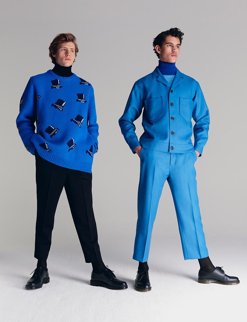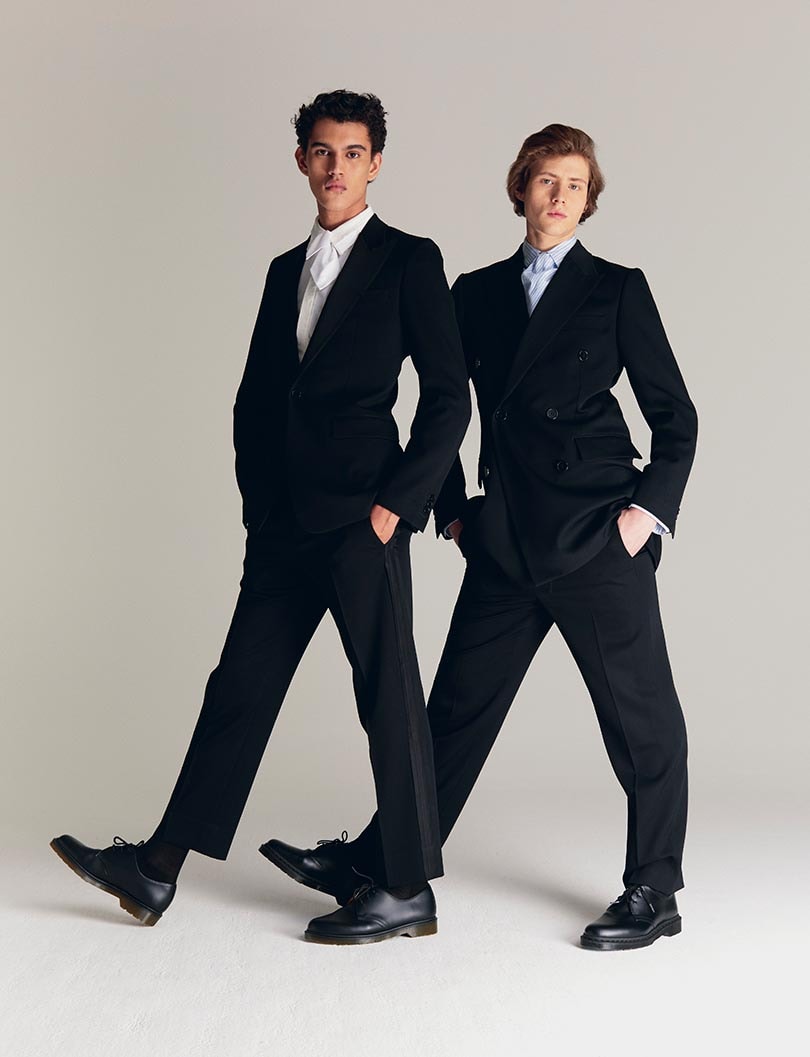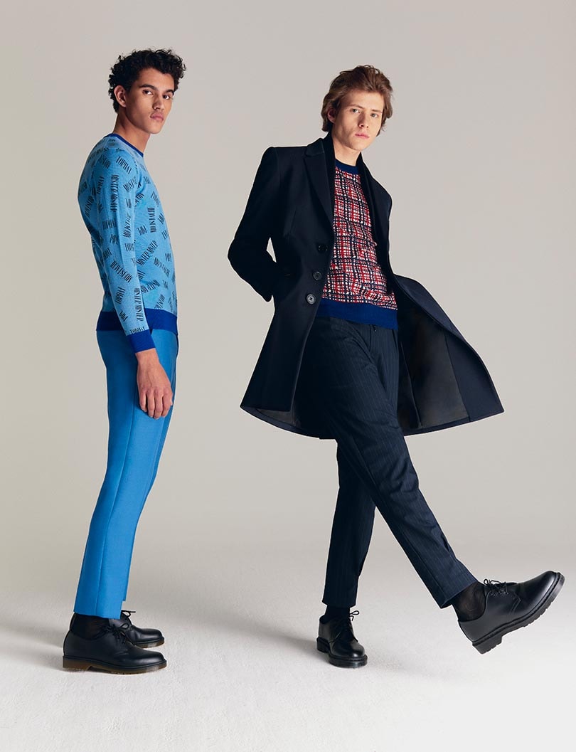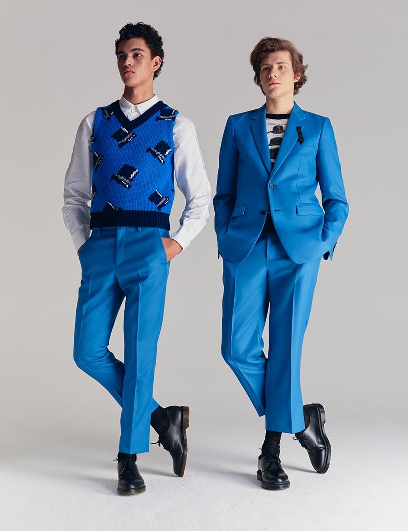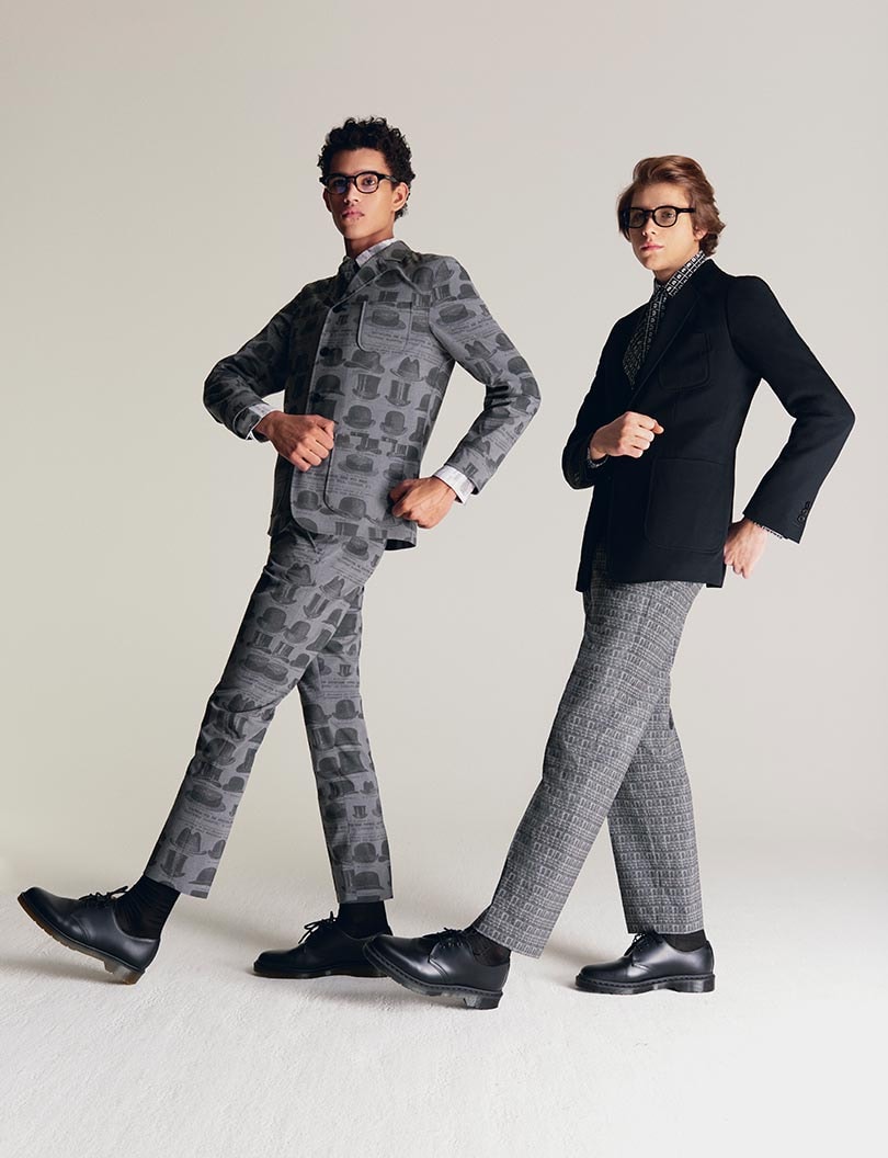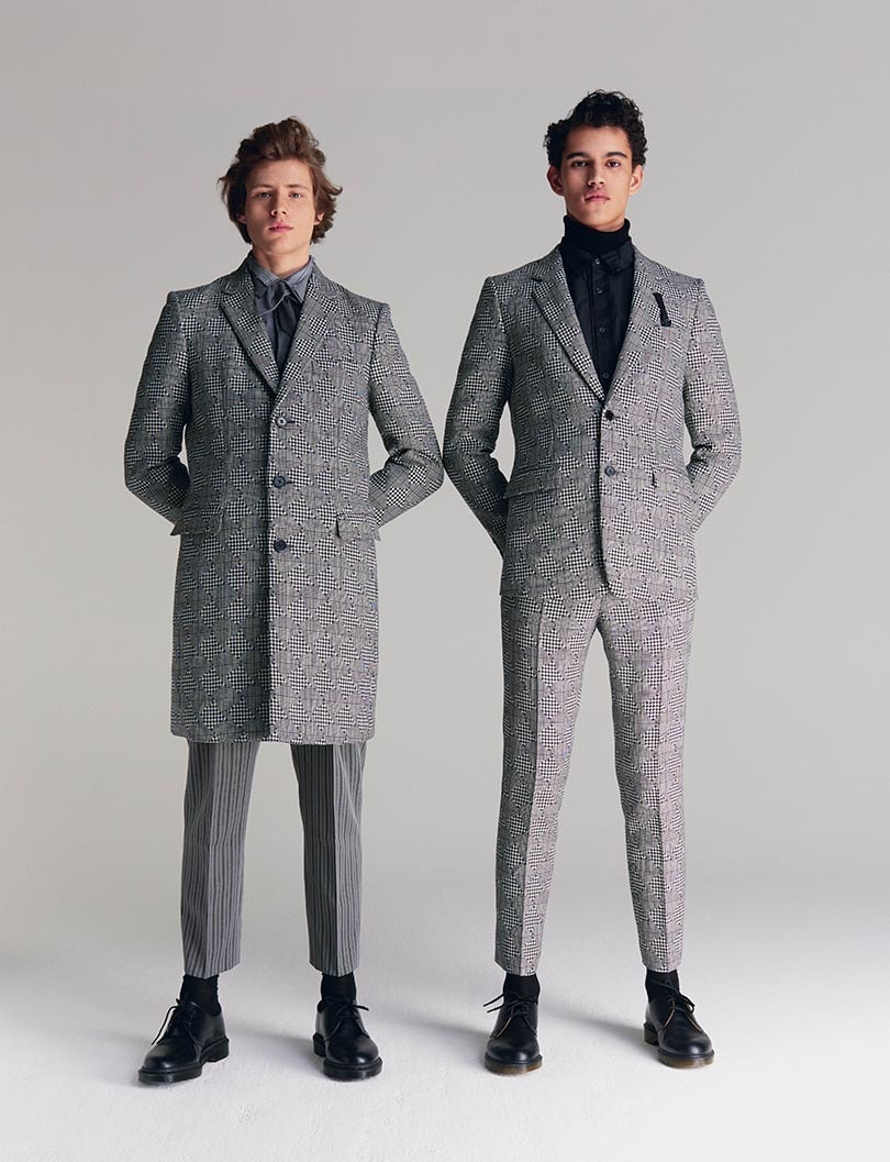 “The collection embraces the modern dandy as a form of self-expression,” the brand said in a release, describing looks that pay homage to “an underlying sense of humour and irony through quirky conversational prints inspired by dandy narratives.”