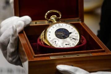 A watch industry expert told AFP before the auction the timepiece was not just an immensely expensive accessory. "This is not a watch you can wear. It is a watch that symbolises strength, power and money," he said. The Patek Philippe piece displays not only the hour but also a plethora of other indicators: a perpetual calendar, the phases of the moon, sidereal time, indications for the time of sunset and sunrise, and the shifting night sky over Manhattan.