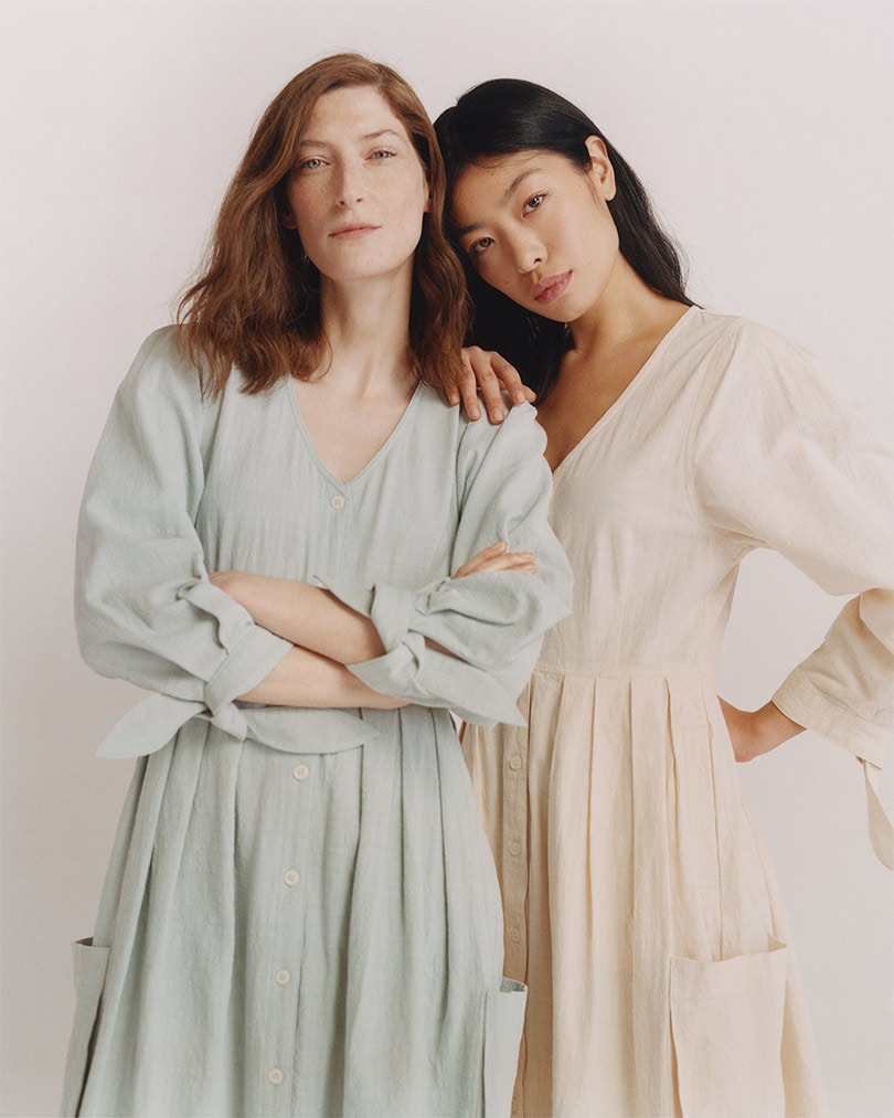 Highlights include the prairie-style ‘Orlando' button-front dress with tie sleeves that comes in ivory and blue, as well as the ‘Arthur’ jogger-style trousers in blush pink, and the relaxed ‘Jerome’ trousers in ivory.