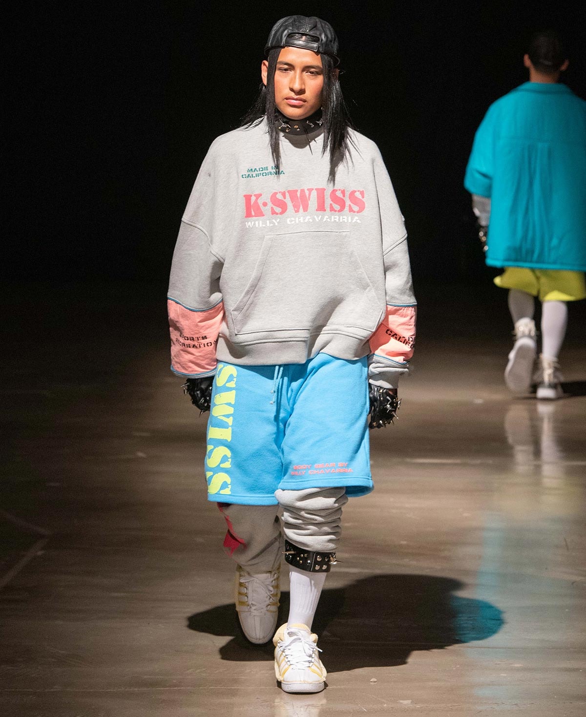 This season both designers expanded the scope of their ongoing jewelry collaboration by creating leather wrapped chains and crystals. The runway show also featured a collaboration with Los Angeles-based shoe brand K-Swiss. "I'm from California, and I grew up wearing K-Swiss, to me it represented this thing of luxury that Americans, especially more poor Americans wanted to wear," Chavarria said to FashionUnited. "I grew up poor and it represented something that symbolized what we wanted to be. You'd save up to go buy a polo shirt and you'd pair that with clean white K-Swiss. I'm using that as a way to shine light on the beauty of Latin American immigrants that come from Central and South America." Chavarria also has a partnership in conjunction with K-Swiss and Kids In Need of Defense where they are sponsoring footwear for immigrant children who need shoes.