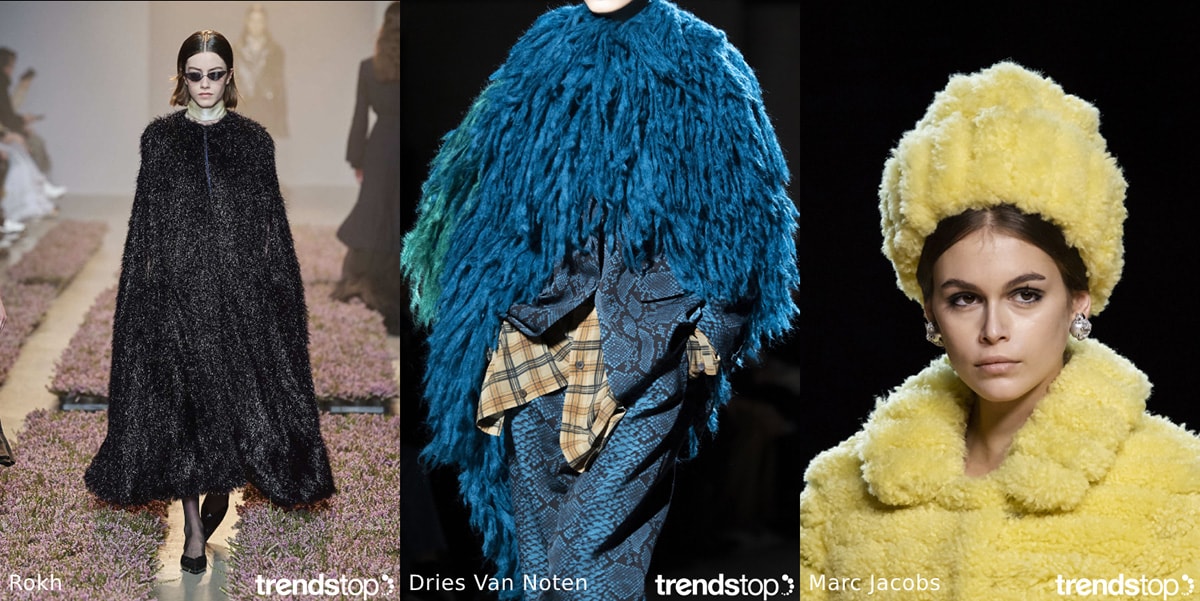 New season material handles reflect the re-emergence of vintage fashion, reviving cosy winter textures that channel feelings of nostalgia. Taking inspiration from childhood, teddy furs and shaggy, glitter fibres are laundered for a care-worn vibe. Deep, fluffy, brushed piles are softened further with the application of retro-infused brights.