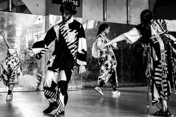 The original Dazzle Ball that inspired the project took place in 1919 and celebrated the famous black-and-white Dazzle pattern. The geometric shapes were painted on ships to disguise them from their enemy during WWI, and they also created a cultural response in the arts, fashion, and music. We – the artists, choreographers, and designers of the project – see the visual confusion created by the Dazzle pattern as a reference to our current confusion about the contested concept of multiple realities posed by immersive technology.