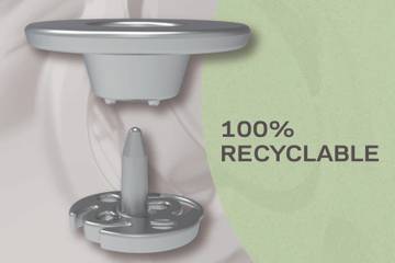 Recycling of metal accessories has always been a problem and through studies on the screw tack button, YKK realised that there was no solution for the rivet and detachable button that was not an easily applicable solution for big-scale orders.