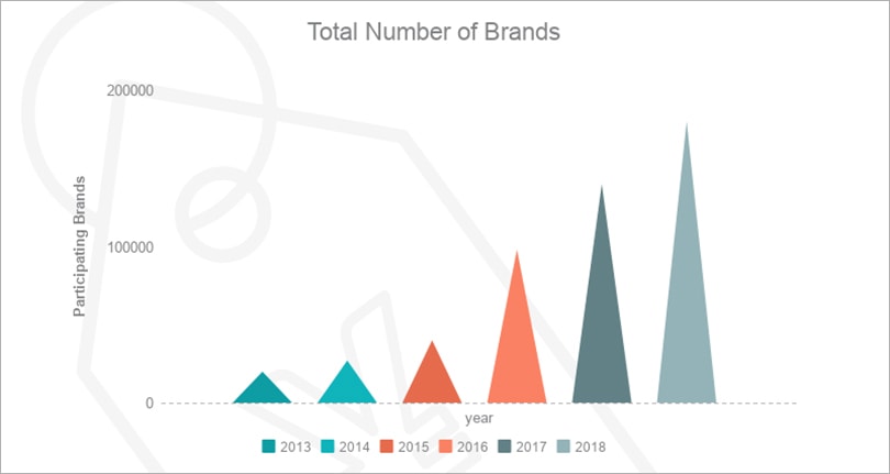 Started as a anti-valentines joke amongst university students, and later on adopted by Alibaba as a sales event to buy themselves a gift to celebrate the beauty of being single, it has since burgeoned into the world’s largest online shopping festival. Rarely do we see financial graphs that points so dramatically upward, and so consistently - but that has been the case for Singles Day, year after year. Fashion United is capturing that spectacular growth in graphs.