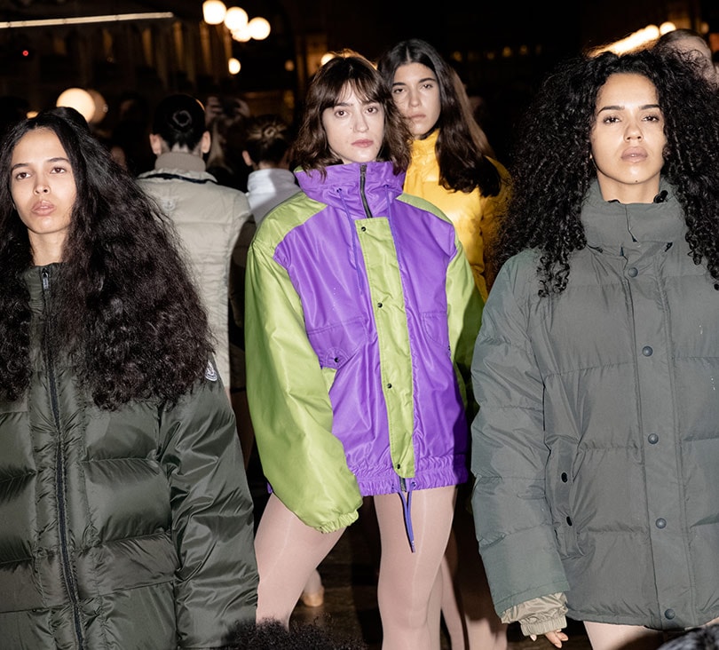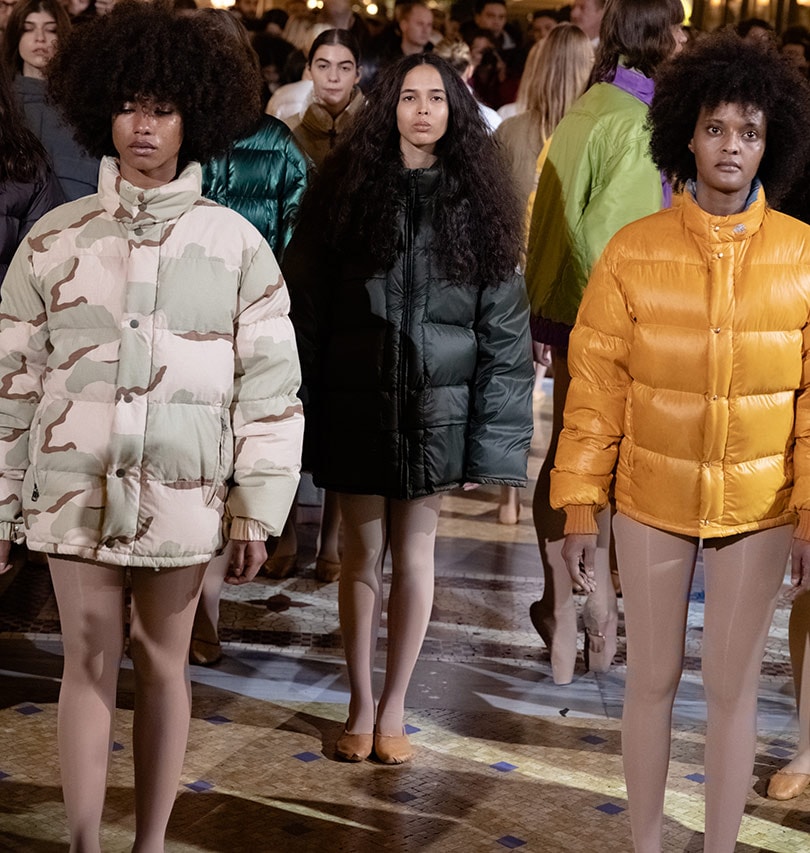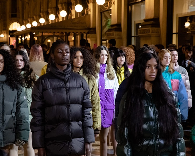 In Milan, the pop-up hosted an artistic performance by Italian-born artist Vanessa Beecroft, where she created a “living image” in front of the prestigious frame of the Galleria Vittorio Emanuele, featuring a formation of models and ballet dancers. Each of the dancers were wearing vintage Moncler jackets that Beecroft explained was her “autobiographical memory of the brand” and illustrated her commentary on identity, desire and fashion.