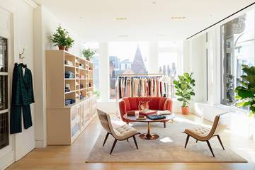 The new 970 square foot store joins a line-up of high-end international and British brands, and showcases Sézane’s unique Parisian aesthetic and limited collections of ready-to-wear designs, bags and shoes.