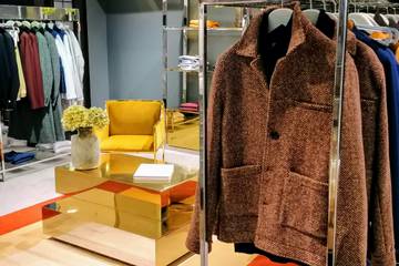 For the pop-up, Richard James has delved into its extensive cloth archive to design a unique twin offering, including a ready-to-wear capsule collection for the famed Knightsbridge department store from rescued and repurposed British and Italian-milled cloths.