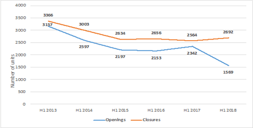 While the rate of closures is similar to the same period last year, the results show a concerning drop in the amount of shops opening year-on-year. In the first half of 2017 there were 2,342 shop openings, while this year that number dropped to 1,569. Greater London and the South East were the areas hit hardest by chain-closures, while Wales fared the best despite still seeing a net loss of 22.