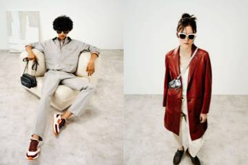 Through voluminous plays on proportion and layered styling, such as large knits and leather gilets paired with fluid trousers, garments provide comfort, cover and a sense of belonging, irrespective of time. Craftsmanship takes center stage with sophisticated techniques and artisanal details, including leather-woven patterns, intricate quilting, whipstitching and double-studded accents across multi-functional designs, from B-Chain bags to cut-out clogs. New streamlined footwear include unisex moccasins with 1851 hardware and essential sneakers in heritage red.