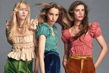 A deliberate play of proportion runs throughout the collection. Garment-dyed workwear and denim pieces are paired with draped leather Basque belts, soft yet architectural knits, fluid blouses, and lace lingerie tops. Maxi belts cinch the waist to sculpt sharp, contrasted silhouettes, rescaling volume and redefining proportion. Statement flou imbues each look with movement, ease and spontaneity. Worn with cropped leather jackets, contrasts are key. Fluidity meets structure, shine merges with matte, transparency overlays the opaque. Within these tensions, the Chloé attitude emerges – sensual, self-assured, and quietly distinctive; color acts as self-expression. Strong primaries and vivid hues enrich the signature Chloé palette of nude, apricot, ecru, and navy. Soft pastels of rose and pistachio blend with jewel tones of sapphire and amber, creating harmonies that feel intentionally unexpected.Texture and proportion collaborate throughout, shaping looks that feel lived-in and unmistakably Chloé.