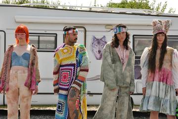 EIRINN HAYHOW presents CRYSTAL EARTH SS22, influenced by the colours and patterns in rocks and crystals, she has created her own natural dyes from foraging local plants and berries, combining the, with carefully selected natural dye powders from around the world. She uses salvaged and sustainable materials in production.