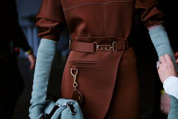 In accessories designed by Silvia Venturini Fendi, the house’s dedication to craftsmanship is expressed through new chapters of the ‘hand in hand’ project, alongside intarsia fur iterations of the FENDI First and oversized shopper. In celebration of the Baguette’s 25th anniversary, three of its beloved previous editions are revived: in cashmere, in shearling-lined leather and in intarsia mink.