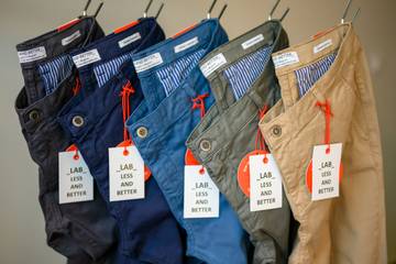 The starting point of LAB LESS AND BETTER is that we should buy less and better. It is a desire for change in this world worn out by “fast fashion”. The collection of chinos, bermudas and denim jeans is manufactured in an eco-responsible way by using dyes that are not chemical and by ‘Eco Wash’ washing: wastewater is treated and then recycled (Oeko-tex Standard 100 and GOTS certificates) As for the brand’s objectives, it is essential today to bring real purchasing flexibility to customers and to collaborate in a mutual respect between all stakeholders: the manufacturers, ourselves and our customers. Very often, multi-brand stores have to buy minimum quantities, minimum budgets and are under increasing pressure from salespeople. Here, it’s the opposite: no more constant buying pressure on multi-brand stores and no new collections to buy every month. You have to think _LESS AND BETTER The customer is really ‘king’; he orders and places his repeat-orders when he wants. No stress for the customer to have a store overflowing with huge quantities of goods ordered 6 months earlier…