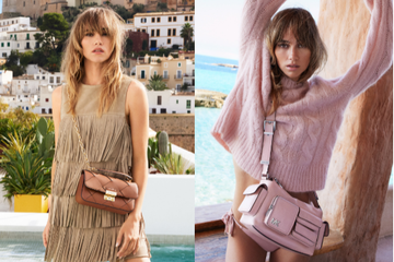 Photographed in the enchanting setting of Ibiza, Waterhouse and Lerman embody the island’s bohemian yet sophisticated essence through the season’s must-have pieces, styled by Emmanuelle Alt. The campaign highlights the joy of traveling in style, as the two protagonists stroll through the old town, enjoy Ibiza’s crystal-clear waters, and explore local hotspots, dressed in outfits and accessories that blend sophistication with effortless ease.