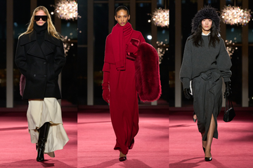For the palette, urban neutrals, including Kors’ signature camel (dubbed fawn this season), were punctuated with power shades of ruby, raspberry and wine. Accessories embraced the architectural strength of the designer’s hometown, paired with shoes designed for a city life on the go. Demonstrative outerwear emphasized the season’s entrance-making appeal.