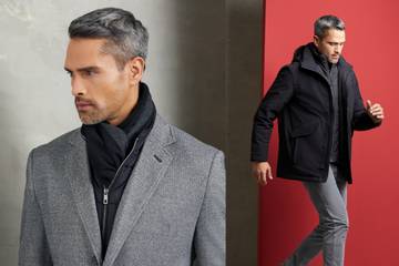 The focus is on masculine fabrics, soft silhouettes and easy-going finishes. In combination with chunky knitted-look upper fabrics or checks in burnt shades, two-in-one designs, reversible versions, sports jackets with standup or short collars with removable gilet inserts emphasise the masculine look.