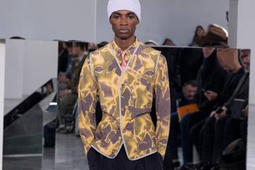 The fabric choices also reflect this sense of tradition being rudely interrupted. We see British gabardine, cavalry twill, and heavy tailoring flannel alongside grungy mohair, overdyed denim in acidic colours, and bleached military surplus cotton drill. Elegant tailoring might be classically British, but so is punk. The outerwear, meanwhile, introduces a rural influence, with jackets that adapt the silhouette of classic country walking coats. To add a modern, sporty twist, these jackets are available with matching fatigue-style trousers that can be worn as a statement set.