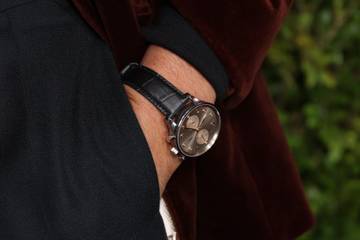British actor Regé-Jean Page was seen wearing an IWC Portugieser Chronograph (Ref. IW371624). The watch features a 41-millimetre stainless steel case and a sand-coloured dial. He wore the timepiece while attending the pre-BAFTA Awards party hosted by Charles Finch and Chanel at 5 Hertford Street in London, UK, on February 21, 2026.