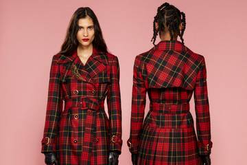 In the women’s collection, wild animal spots and python skins are combined with very classic tartans in bold, ultra-chic juxtapositions. The wardrobe includes impeccable tailored checkered blazers with unusual color combinations, bon ton capes to wear with a casual mood, mini full skirts and trousers with deep pleats for new sophisticated volumes. Tartan coats reveal plissé details, down jackets are enriched with spray-effect snake prints, while shirt-dresses steal the spotlight with patchwork of different patterns. Argyle motifs define the knitwear, including pencil skirts and skinny pants, while a classic leather trench coat reveals an intriguing lived-in effect.