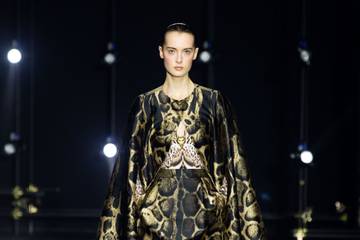 The game continues with a series of special pieces: from the coat/robe in topaz velvet and animal prints to the jaguar cape in lined brocade and fil coupé.