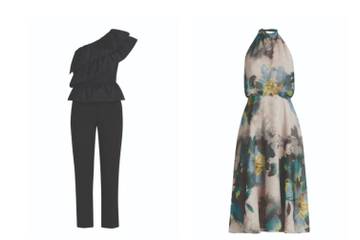 Whether it's a cool party dress with large shoulder pads or a feminine halterneck dress, the pieces show a strong shoulder across the collection and stand for total Woman Power. Sequinned crop tops with puff sleeves celebrate pure femininity and let us shine in full bloom. In addition, blossoming designs like abstract floral printed organza and flowing chiffon feel fresh and invigorating. The deep dark green midi skirt with box pleats is an essential must-have.