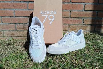 Blocks79’s collections include styles for men and women, offering low- and high-top versions in classic white, ecru and greyish hues, at times specked with pops of colour in neon pink and yellow, bright red, cornflower blue and more. A distinctive feature pointing back at the brands philosophy is the stylized contours of a podium on the heel of some styles, with the numbers one, two and three carved into the leather. The body of the shoe gives visual cues reminiscent of track lanes, and some styles feature a wear-and-tear look with greyish shadows and roughened edges. The price point of Blocks79 sneakers is between 200 and 235 Euros.