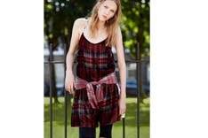 The collection offers a mix of tartan and velvet dresses and flowery print T-shirts mixed with ripped jeans and dungarees. 'Dalston Tart' is currently available on Asos.com.