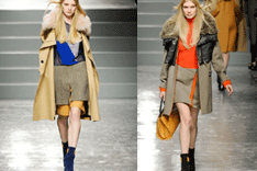 Sykes, as it happens designs beautiful and more importantly wearable clothes. He debut at Aquascutum has brought her back into the limelight and the first collection, entitled English Icons, sheer silks with diamond appliques, herringbone tweed trenchcoats, a wide-leg pant with orange pop trim (very minimalist, very Celine). All in all it was a show of taking the house of Aquascutum into the new decade, a modern version of chic country living. This time with a clean aesthetic.