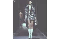 The runway, which was intercut with live performances from Grimes, Angel Haze and Dead Sara, revealed the new-look Versus Versace collection featuring reinventions of classic Versace looks – such as leather studded jackets, safety pin adorned cut-out mini dresses and op-art prints, which all became immediately available to purchase online.