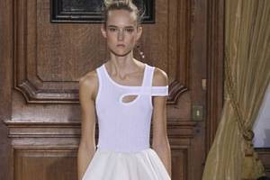 Viktor & Rolf boarded the sportswear train this season, with ballet vests, cycling shorts, leggings and even mesh in the collection. But it was juxtaposed with complicated tunics and dresses, some with floral prints and complex draping. Sportswear has been everywhere for some time, so to be introducing it now, a novel departure for this duo, seems a little late.