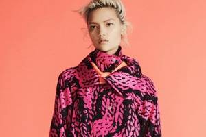 The capsule line is a re-imagining of her graduate collection, featuring 12-pieces inspired by the Native American Inuits, and includes sports-inflected clothing and accessories that are printed with images of cable knits in varying scales to give the illusion of knitwear.